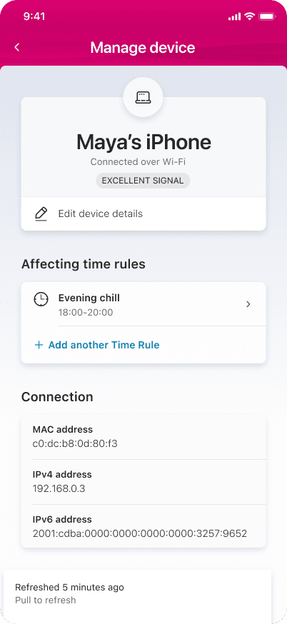 The existing experience was structured around technical data: MAC addresses, IP addresses, connection type, signal strength. All accurate. None of it meaningful to a non-technical user trying to answer one question.