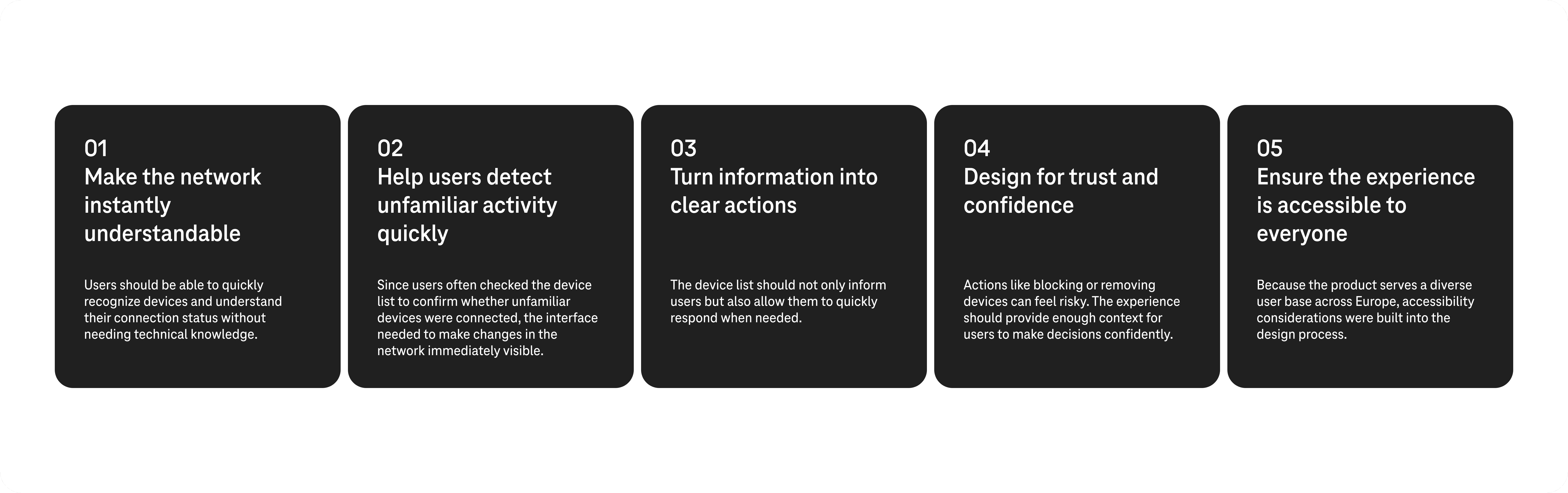 Research revealed that the mental model most users brought to the device list wasn't "network management" — it was closer to checking whether the front door was locked. They wanted confirmation that nothing unexpected had happened, not a technical readout of what had.